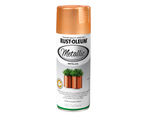 Rust-Oleum® Metallic deja un acabado metálico decorativo brillante. Su contenido de partículas metálicas le otorga un brillo genuino, ideal para dar apariencia metálica a cualquier objeto decorativo como marcos, candelabros, adornos y más. Se puede aplicar sobre superficies u objetos de interior hechos de madera, metal, cerámica no esmaltada, mampostería o yeso.