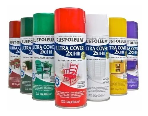 Pintura en aerosol ultra cubritiva para aplicar sobre madera, metal, plástico, mimbre, vidrio, melamina. Con los aerosoles Rust-Oleum® Ultra Cover® 2X puedes renovar, restaurar o reciclar el objeto que imagines, sin importar la forma o material con que esté hecho. Ya sea que estés buscando un color original o un acabado único, encontrarás en Ultra Cover® 2X el mejor aliado para tu proyecto.
