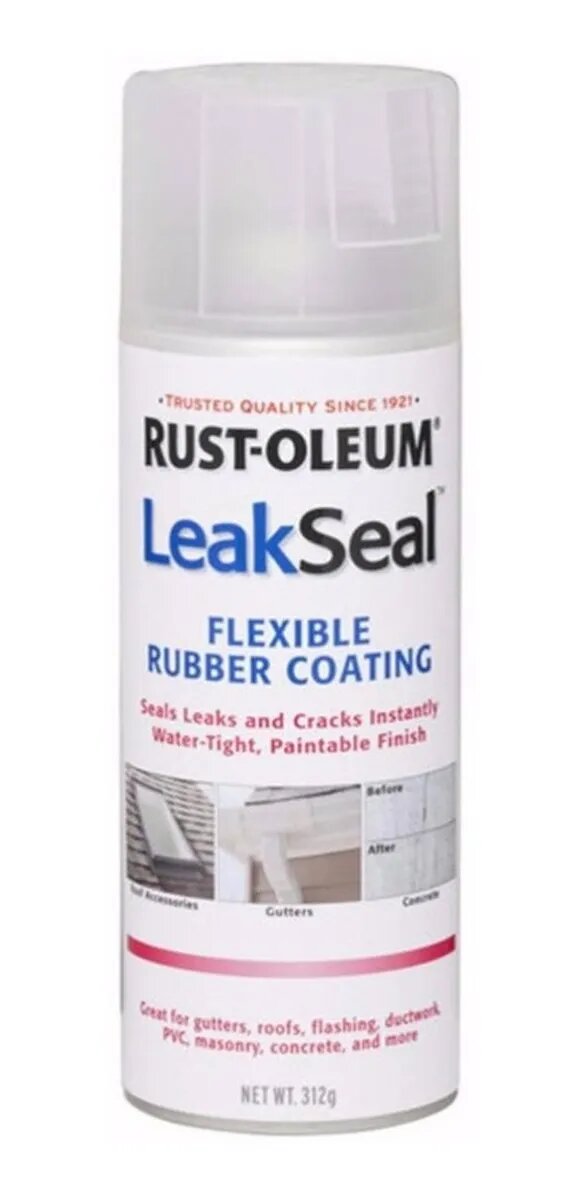 Rust-Oleum® LeakSeal® es un sellador impermeabilizante de caucho flexible en aerosol, diseñado para sellar grietas y goteras de manera muy fácil. Genera un revestimiento de goma flexible e impermeable que sella la superficie y previene la penetración de humedad a la vez que evita la generación de óxido y la corrosión.