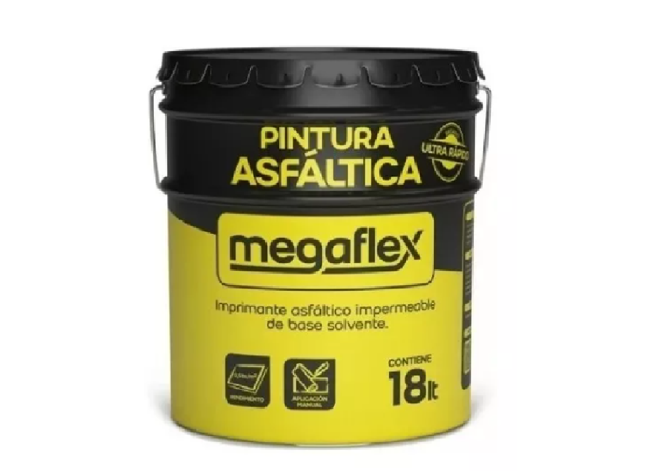 Imprimante en base solvente de secado ultrarrápido, para usos múltiples. Megaflex Asfaltica es una solución en la que participan bases asfálticas especiales oxidadas y solventes volátiles provenientes de la destilación del petróleo. La rápida volatización de los solventes permite la formación de una película flexible de alta adhesividad e impermeabilidad.