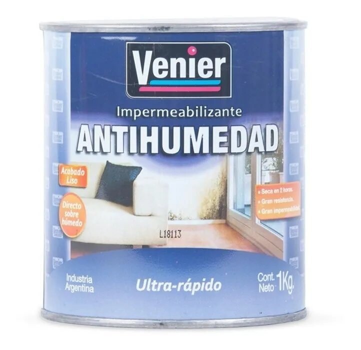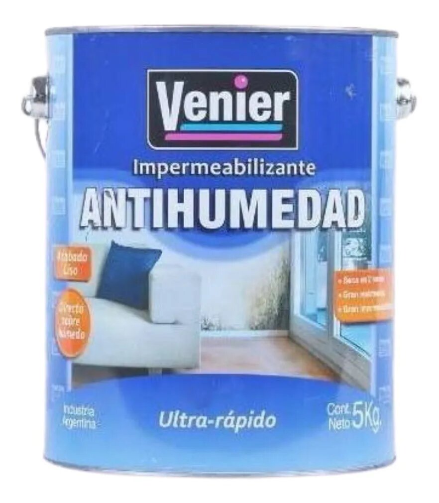 La aplicación a pincel, debe hacerse en forma circular para obtener una penetración máxima y una mejor adherencia. A continuación, dar unas pasadas verticales para uniformar el recubrimiento. En superficies muy absorbentes diluir con un 10% de aguarrás. En caso de paredes antiguas, levante con un cepillo metálico el polvillo y la pintura anterior. En el caso de que exista suciedad, manchas de aceite o grasa, deben eliminarse con un enérgico desengrasante (ejemplo, detergente). Seguidamente enjuagar por completo con agua limpia, eliminando así todo vestigio de limpiador y materia suelta. Venier Antihumedad reacciona con el agua formando una capa totalmente impermeable. Se puede aplicar en sótanos, garages, baños, cocinas, locales industriales, silos y en cualquier lugar de la casa donde exista humedad.